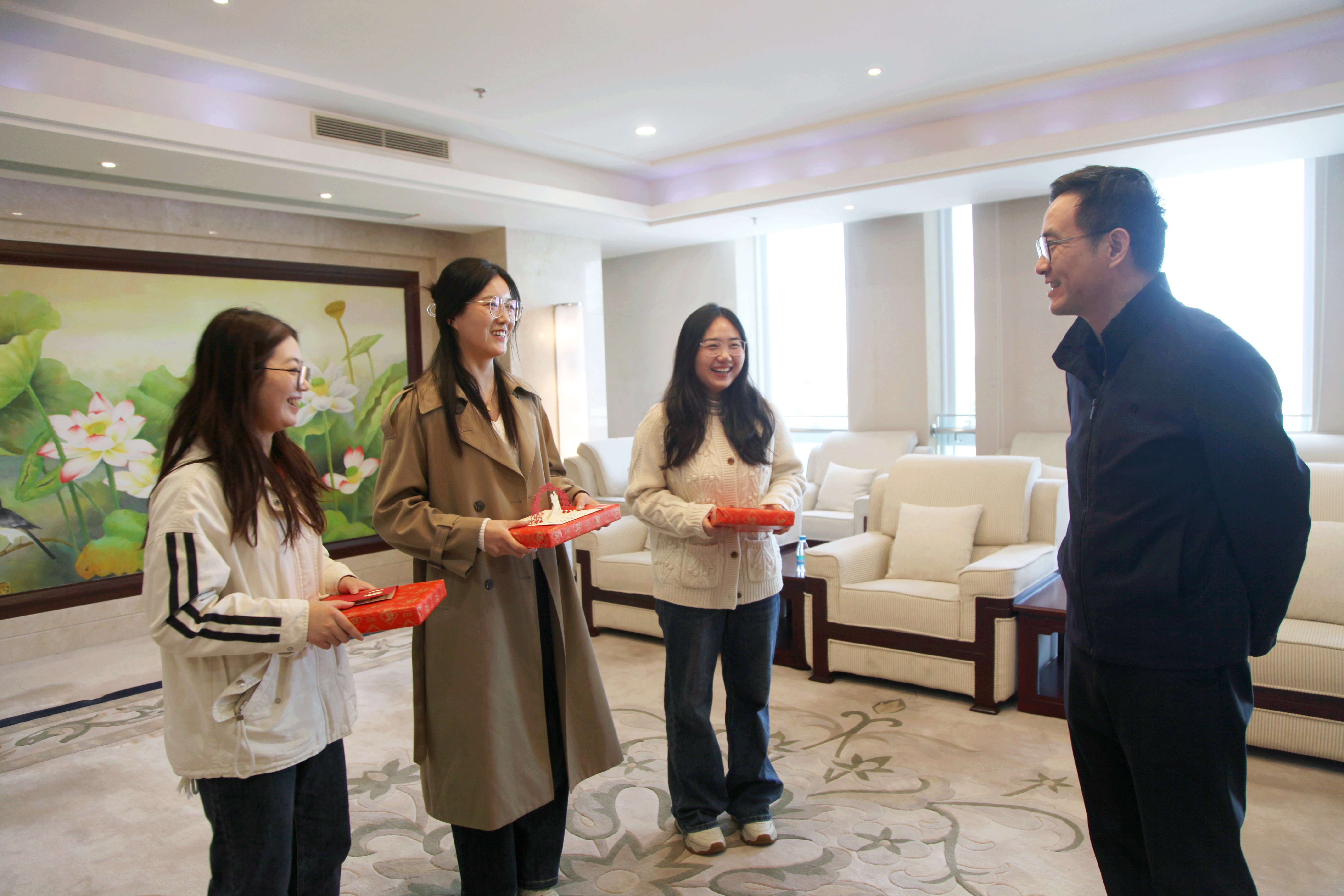 启程参加集体婚礼前,孙跃飞与3位新人进行了亲切交流互动,为新人们送上新婚祝福,并详细了解了新人们在工作和生活中的成长与收获。